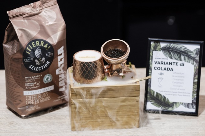 La Variante Colada si avvale di una combinazione unica, dotata di una doppia struttura tra aria e perlage, tra foam e caviale, dove il protagonista rimane sempre il caffè, e in particolare Lavazza ¡Tierra! Selection. La carica aromatica floreale di questa miscela intervalla note di miele e datteri con un elegante bouquet di cocco e di spezie, per un dolce risultato capace di amplificare la percezione degli altri ingredienti. Il consumatore degusterà dapprima Lavazza ¡Tierra! Selection in versione aria, una foam di grande impatto sensoriale studiata per preparare il palato alla successiva degustazione del caviale di Kafa, dalla consistenza inattesa.