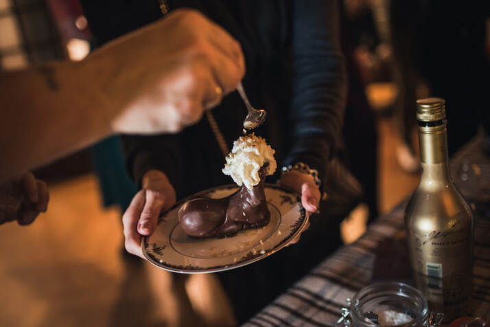 Realizzata con lo straordinario cioccolato al latte di Lir, Azienda irlandese che produce anche una deliziosa gamma di cioccolatini al gusto Baileys. Le renne sono cave, create per essere riempite con Baileys Original Irish Cream o altre varianti Baileys. Baileys offre la possibilità di liberare l’immaginazione nel creare divertenti toppings e guarnizioni per la propria renna. Il meccanismo è semplice, rompi delicatamente le corna alla renna, riempila con la crema di Baileys e ne decori la testa con panna montata, scaglie di cioccolato fondente o al latte, granelli di zucchero o frutti di bosco.