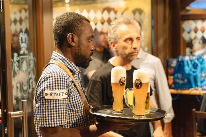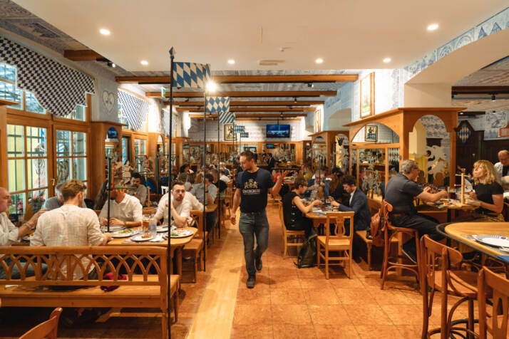 La stube di viale Lazio (enorme, con accesso anche da viale Monte Nero) è il settimo punto a gestione diretta del gruppo, che si affida per i restanti a fidati franchisee: contando i quaranta membri dello staff del nuovo locale, sono oltre cinquecento le individualità impiegate dall’azienda, che nel 2022 ha generato ricavi per oltre 17 milioni di Euro (22 milioni la previsione per quest’anno) e mira ai novanta punti vendita nel giro di cinque anni. Il nuovo locale di Milano richiama le caratteristiche architettoniche tipiche dell’Oktoberfest, praticamente in ogni dettaglio, dagli interni in legno alle divise del personale, fino ovviamente alla proposta enogastronomica. Aperto sia a pranzo che a cena con formule dedicate, Löwengrube ha in carta tipicità bavaresi più classiche (wurstel, crauti, stinco di maiale, sottaceti) e proposte di carne alla griglia, arrivando addirittura ad alternative vegetariane.