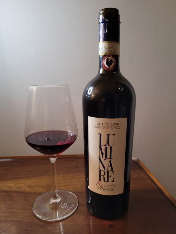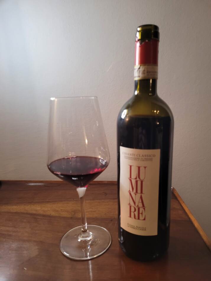 Questo vino è prodotto con uve provenienti da una vigna reimpiantata sei anni fa con cloni di Sangiovese prelevati dalla precedente vigna vecchia. Il vino è limpido, trasparente di colore rosso rubino intenso come il suo profumo. Al naso infatti si sentono i sentori floreali di viola e rosa fresche e fruttati di ciliegia croccante e frutti rossi. Lasciato respirare nel bicchiere, si percepiscono note balsamiche, spezie come chiodi di garofano e sul finale una leggera prugna. Al gusto Luminare 2017 ha una buona struttura caldo, con una certa morbidezza attenuata da tannini ancora ben preponderanti, una bella freschezza, buona acidità e sapidità e persistenza. Il fatto che il vino sia leggermente disarmonico, ovvero che abbia le parti più dure siano ancora più preponderanti rispetto agli elementi di morbidezza, non è un difetto. Infatti, sebbene questo Chianti Classico sia pronto alla beva, è ancora schietto, vivo ma le sue attuali queste caratteristiche gli consentono di poter migliorare nel tempo. Saremmo curiosi di degustarlo nuovamente fra un paio d’anni. Probabilmente il vino mostrerà un maggiore equilibrio e armonia. Da abbinare a carni rosse, arrosti e selvaggina