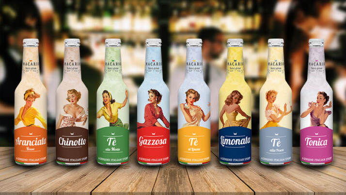 I soft drink Made in Italy Macario, dal gusto e dalla livrea retrò, si distinguono da sempre per la loro confezione in vetro – materiale completamente riciclabile – che ne preserva al meglio gusto e freschezza. Realizzate grazie a ricette originali che risalgono ai primi anni ’50, ma con gli strumenti innovativi della moderna produzione, le otto bibite analcoliche, da gustare da sole ma indicate anche nell’abbinamento con cocktails o long drink, sono declinate in diverse varietà dai gusti evergreen – aranciata rossa, gazzosa, tonica, limonata, chinotto, tè alla menta, alla pesca e al limone – con l’obiettivo di esaltare gli ingredienti naturali utilizzati e la tradizione a cui fanno riferimento.