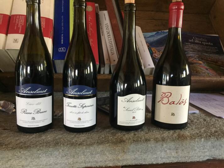 Renato Anselmet è uno dei grandi personaggi della viticoltura valdostana, orgogliosissimo della sua famiglia oggi tutta impegnata in vigna, a partire dal figlio Giorgio che ha in mano le redini della tenuta. Un passato tra dighe e cantieri dell’Enel dove nel racconto di Renato scopriamo anche collegamenti inaspettati a conferma di quanto sia piccolo il mondo. Gli Anselmet sono originiari della Savoia, nel 1500 passano da queste parti delle Alpi e arrivano in Valle d’Aosta, la prima traccia di un Anselmet vignaiolo si ha nel 1585 attraverso un contratto di acquisto di una vigna in località Villeneuve. La svolta recente nel vino nel 1978, alla morte improvvisa del padre Renato decide di non lasciare la terra e le vigne lavorate, impiegando con la complicità della moglie sabati e domeniche, oltre che le ferie e qualsiasi spazio di tempo in quella che diventerà la sua passione e il suo mondo, trasmessa a figli e nipoti che stanno sperimentando alla ricerca della loro strada. “Nel 2001 nasce la cantina vera e propria ma eravamo attivi anche da prima, oggi siamo qui e sono davvero molto orgoglioso del percorso che ha fatto la nostra Maison Anselmet con i suoi vini, l’impulso chiaramente è stato dato da mio figlio Giorgio che dopo aver studiato all’Institut Agricole Régional, a 18 anni invece di una macchina mi chiese come regalo di compleanno una vigna, deciso a continuare in maniera seria e professionale nel settore del vino”.
