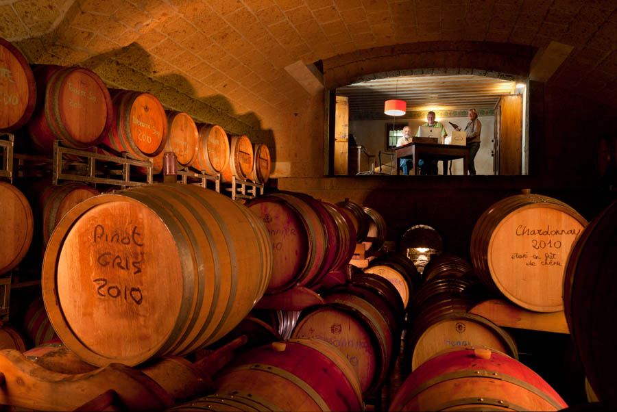 Siamo in località Vereytaz, una struttura che nella zona di accoglienza ha mantenuto i valori e le caratteristiche delle costruzioni storiche della valle. Legno vecchio recuperato, pietra antica solo spazzolata, ferri battuti recenti ma nel rispetto del lavoro manuale degli artigiani locali. Nel piazzale antistante alla Maison Anselmet, si pensa già alla prossima vendemmia. “Qui in fase di vendemmia facciamo un punto di raccolta con le uve che a caduta scendono verso la zona di vinificazione al piano interrato”– spiega Renato Anselmet. Ci dirigiamo verso la zona di vinificazione, tanta tecnologia con fusti in acciaio ideali per controllare tutta la temperatura nella fase di fermentazione. Qualche metro più in là invece un vero e proprio tesoro, con le botti dove vengono fatti affinare i vini rossi e in qualche caso anche i bianchi. “Tecnologia e tradizione- spiega Renato Anselmet- nel 2007 abbiamo costruito tutto questo cercando di avere il massimo della tecnologia e un approccio scientifico per la parte di fermentazione, lasciando invece lavorare le botti con l’affinamento in legno secondo un metodo tradizionale che per la nostra cantina ha sempre visto l’utilizzo della barrique”. Uno spettacolo pensare all’affinamento dei grandi vini della Maison in queste barriques, sono i proprietari stessi della Maison Anselmet che si recano ogni anno in Francia per acquistare barrique nuove e poi dosarle con uso sapiente nell’affinamento. “Di solito facciamo fare 1/3 primo passaggio, 1/3 secondo passaggio e 1/3 terzo passaggio, in questa maniera non abbiamo troppo l’invasività del legno ma riusciamo ad avere un tocco in più nel vino”.