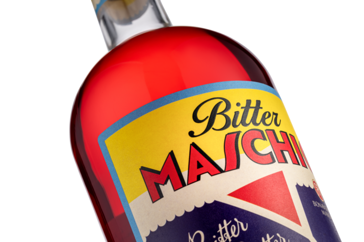 Il Bitter Maschio non è solo un bitter, è il bitter, o forse sarebbe meglio dire “Un Bitter Bitter”. Caratterizzato da un rosso vibrante che cattura lo sguardo ancor prima del palato, è ispirato ai toni accesi degli anni d’oro della pubblicità italiana, quando le réclame dipingevano scenari sognanti e i manifesti coloravano le strade. La bottiglia, slanciata ed elegante, richiama la sobrietà del vetro satinato di un tempo, con dettagli in rilievo che restituiscono al tatto una sensazione quasi artigianale.