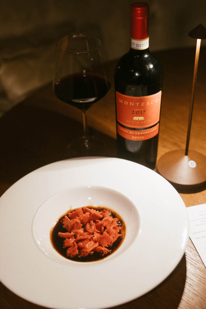 Durante la serata è stato ripreso il tema del viaggio affrontato nelle masterclass, con protagonisti due piatti ideati e realizzati dallo Chef Giuseppe Postorino per sposare nell’abbinamento i vini dell’Azienda: baccalà soffice, polenta bianca croccante e aria di R.D.O. con Masottina R.D.O. Ponente Brut Conegliano Valdobbiadene Prosecco Superiore DOCG Rive di Ogliano 2022 e Ravioli del plin rossi, come un civet di piccione con Ai Palazzi by Masottina Montesco Colli di Conegliano Rosso DOCG 2017. “Con i ragazzi dell’Alchimia c’è un rapporto speciale, in particolare con Alberto Tasinato che è stato il primo nostro vero ambassador a credere nelle potenzialità dell’evoluzione delle nostre bollicine- chiosa Federico Dal Bianco- mentre lo Chef Giuseppe Postorino anche in questa occasione è riuscito a stupirci proponendo degli abbinamenti perfetti tra cibo e vino”.