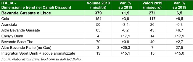 Mercato Bibite Italia: recupero volumi e valori nel 2019