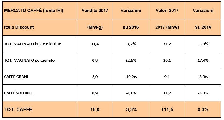 Mercato Caffè Italia nella GDO: prosegue nel 2017 il calo dei volumi