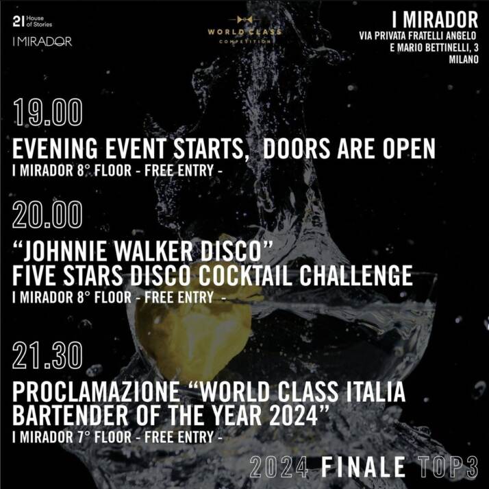 Il concorrente che raggiungerà il punteggio più alto da parte della giuria, si aggiudicherà il titolo di “Best Italian Bartender of the Year 2024” e poter dunque accedere alla Global Final di World Class che si terrà a Shangai, in Cina.