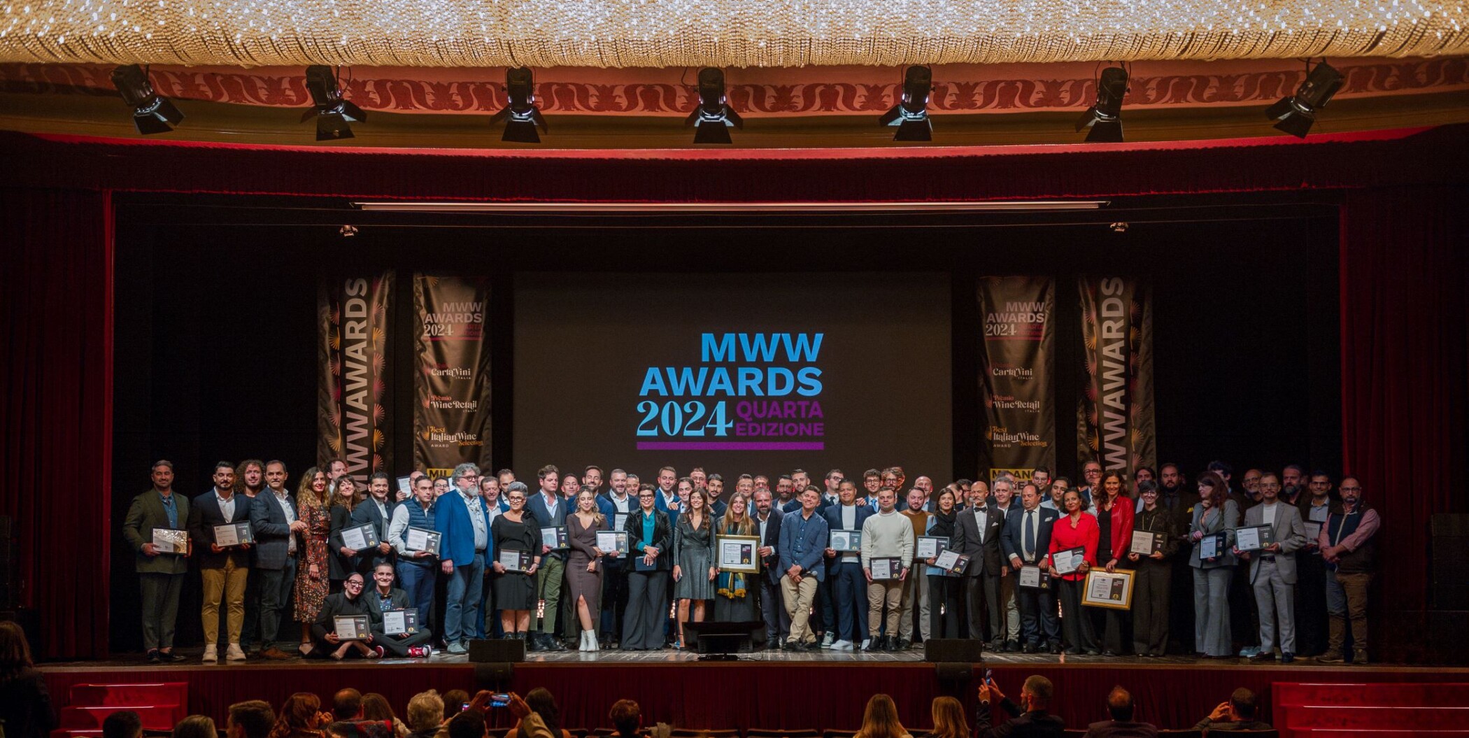 Il vino dà spettacolo al Teatro Manzoni. Si è alzato ieri sera, lunedì 7 ottobre, il sipario sulla quarta edizione dei Milano Wine Week Awards, la cerimonia annuale di premiazione a cura di MWW Group che celebra le migliori selezioni vinicole, quest’anno per la prima volta in scena con una serata di gala sullo storico palcoscenico del Manzoni (Via Alessandro Manzoni, 40 – Milano).