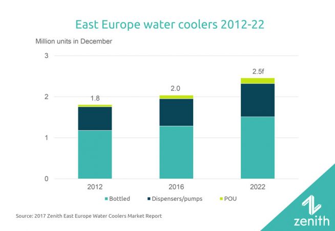 Gli impianti alimentati con acqua del rubinetto (POU), anche se ancora relativamente sottosviluppati nell’Est Europa, hanno continuato la loro crescita, aumentando dal 5.2% nel 2016 a 1.5 milioni di unità. Oggi rappresentano il 28.9% del mercato, rispetto al 26.6% del 2012.