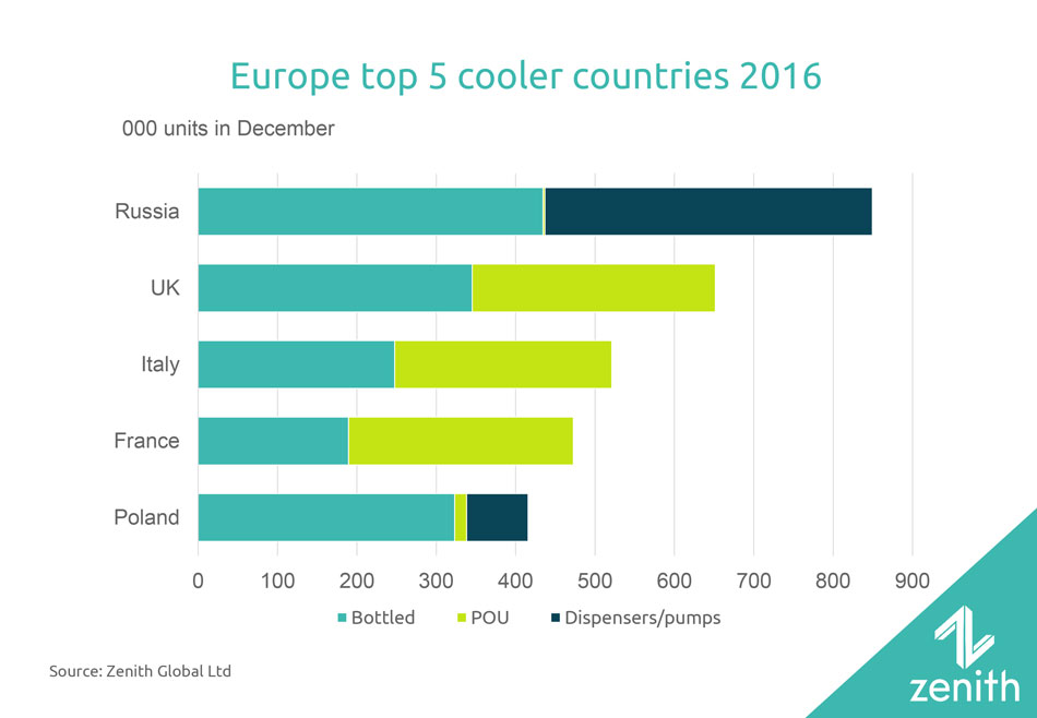 “Un generale miglioramento del clima economico, una maggior fiducia nelle imprese e una miglior percezione dell’acqua come sana fonte di idratazione hanno supportato la crescita del settore di refrigeratori nella maggior parte dei mercati europei”, ha commentato la consulente principale di Zenith, Karen Wells.