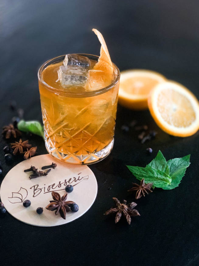 Sempre più tendenza, la mixology bio apre un panorama tutto da scoprire, con la qualità della materia prima che diventa un punto di partenza per un pubblico sempre più attento al benessere oltre che al gusto. Bioesserì ha coinvolto i migliori produttori bio per una proposta intrigante, che racconta di una miscelazione contemporanea, giocosa, in linea con la tendenza alla leggerezza anche nei cocktail. Spazio alla creatività di Andrea Di Prinzio, cocktail semplici nella struttura, dieci signature drink a cui se ne aggiungono quattro in food pairing dalle ricette ricercate e autentiche. Si va dai ricordi di Sicilia con Ballarò, una versione mediterranea del classico Blody Mary fino a Trinacria che mescola amaro alle erbe siciliane e marmellata di arancia, non mancano le affumicature sperimentali di Dulcis in fumo e gli spunti più esotici come El Floridita o L’Azteco. “Stiamo cercando di spingere sempre più sul concetto di food pairing, con la pizza che è une delle specialità di Biosserì è più semplice, pian piano anche con la clientela più giovane vediamo che aumenta anche chi ordina un cocktail per la cena pasteggiando in maniera diversa. A gennaio ci sarà il lancio della nostra prima vera drink list dove cerceheremo di stupire con delle belle novità”. Una mixology sempre più bio e sempre più sostenibile, con l’utilizzo di ingredienti di recupero, lotta allo spreco senza rinunciare al gusto e alla creatività, grande attenzione anche al plastic free, sostituendo le cannucce di plastica con la loro versione biodegradabile in amido di mais.