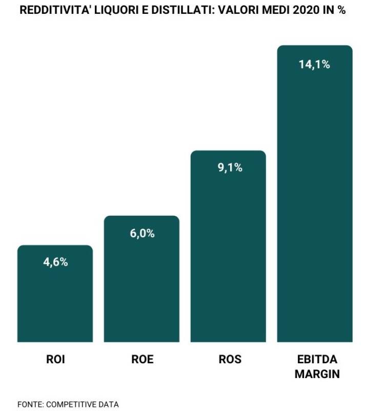 Aggregando i bilanci delle società che realizzano nel settore della produzione di liquori e distillati una quota superiore al 50% dei ricavi si ottiene il bilancio somma settoriale, dal quale vengono calcolati i valori medi di riferimento con cui confrontare le performance aziendali.