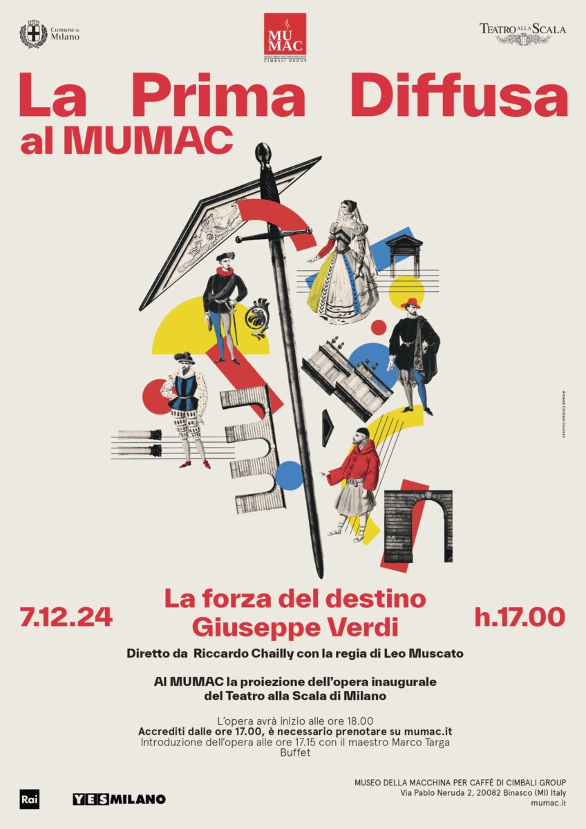 Per la settima volta, MUMAC, Il Museo della Macchina per Caffè di Cimbali Group, mette a disposizione i propri spazi per la Prima Diffusa, l’iniziativa di Comune di Milano, Edison e Teatro alla Scala per portare l’opera della Prima, La forza del destino di Giuseppe Verdi, nei quartieri della Città e in Città Metropolitana con proiezioni, concerti e performance in oltre 30 luoghi di Milano e dintorni. La Prima Diffusa rappresenta un appuntamento fondamentale per avvicinare il pubblico alla Prima Scaligera.