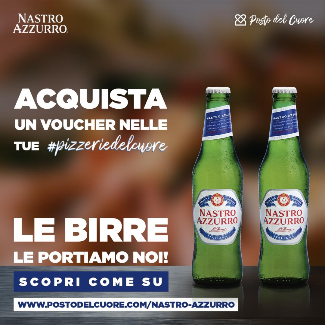 A partire da oggi, sulla pagina dedicata, gli utenti potranno acquistare un voucher per una consumazione per due persone, valido fino al 31 dicembre 2021, da spendere presso la propria pizzeria del cuore a pranzo, o in comodità da casa, grazie al take-away (previa disponibilità del locale), o per una cena futura. Una volta recatisi nella propria pizzeria del cuore, gli ospiti riceveranno una birra omaggio offerta da Nastro Azzurro.