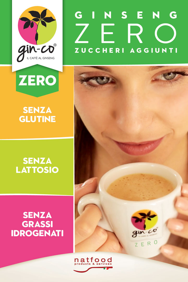 È nato per intercettare i consumatori che non si accostano al ginseng a causa della dolcezza intrinseca nel prodotto, nato fin dalle origini nei bar italiani come un piacere dolce, una bevanda zuccherata. I consumi evolvono e Natfood persegue nel proprio obiettivo di portare al bar qualità e gratificazione nelle pause degli italiani qualunque gusto abbiano. Oltre a Gin-co Original, dal gusto dolce e caramellato, al light, al decaffeinato ora chi vuole sentire l’intensità del caffè e del ginseng viene soddisfatto da Gin-co Zero.