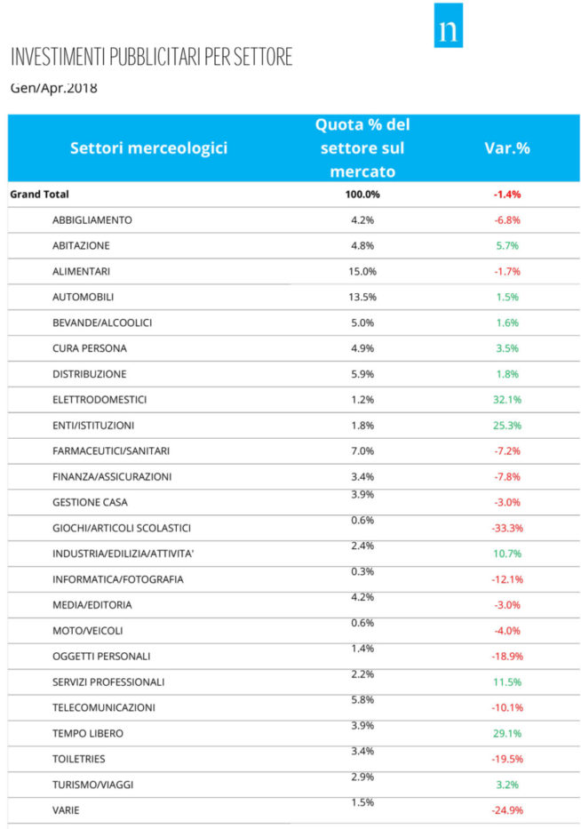 Nielsen: il mercato pubblicitario in Italia a maggio 2018 chiude in negativo