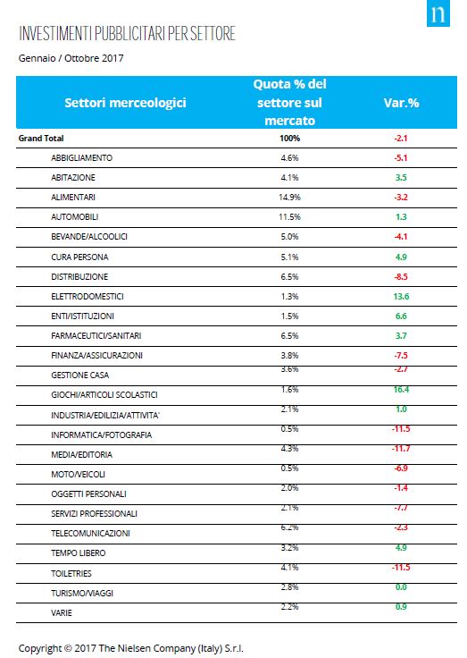 Nielsen: mercato pubblicitario in Italia nel 2017