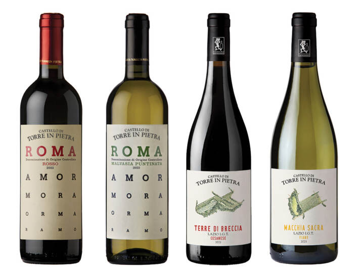 Castello di Torre in Pietra è uno dei portabandiera della DOC Roma, una denominazione giovane che però ha alle spalle una tradizione millenaria. Montepulciano e Cesanese sono i due vitigni rossi che il disciplinare punta a valorizzare, insieme al Sangiovese. La Malvasia Puntinata invece è uno dei vitigni su cui si sta più lavorando. Castello di Torre in Pietra produce un Roma Rosso, un Roma Rosso Riserva e un Roma Malvasia Puntinata.
