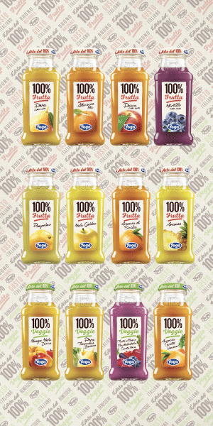 Una gamma di succhi equilibrati, contenenti solo gli zuccheri presenti nella frutta e nella verdura, gustosi, vellutati e naturalmente buoni, in distribuzione nei bar italiani nel formato da 200ml, con una novità anche nel look e nel packaging. La bottiglia è in vetro trasparente con la scritta in rilievo che fa riferimento all’anno di nascita del brand Yoga (1946), mentre l’etichetta dai tratti puliti e dallo stile elegantemente artigianale esalta l’immagine e la descrizione del prodotto.
