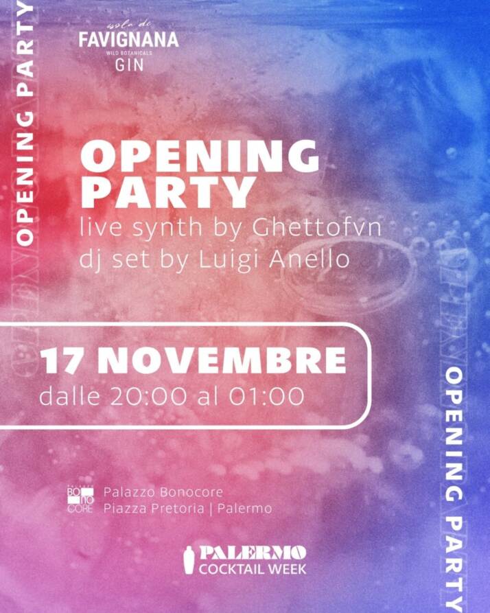 Opening Party | Lunedì 17 novembre – Palazzo Bonocore, Palermo