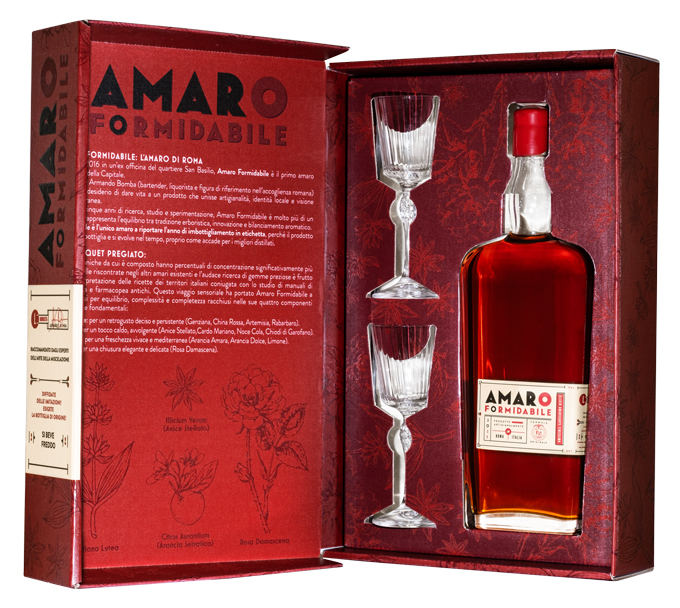 Amaro Formidabile incarna la visione del suo creatore, Armando Bomba, liquorista che ha saputo fondere l’arte della miscelazione con quella della profumeria. Realizzato artigianalmente e con un processo di macerazione totalmente naturale (senza additivi, coloranti né aromi artificiali), questo amaro al palato conquista con il suo ricco complesso aromatico. Tra le sue 14 botaniche aromatiche e officinali spiccano le note di fave di cacao tostate e anice, ma anche le sfumature intense di china rossa, rabarbaro e rosa damascena, regalando un profilo agrumato e lievemente affumicato. Perfetto dopocena, Amaro Formidabile è anche un regalo di classe per gli amanti dei sapori e dei profumi invernali: in occasione delle prossime festività, si presenta anche in una raffinata versione “astucciata”, con la bottiglia accompagnata da due eleganti calici da degustazione.