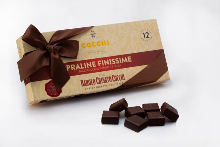 Accanto al panettone, Cocchi celebra quest’anno un altro gioiello del gusto piemontese: le Praline al Barolo Chinato, che compiono trent’anni (1995–2025).