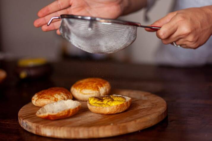 Farcire la base con l’aiuto di una sac à poche, e cospargere con un pizzico di caffè macinato, infine chiudere i panini con la parte superiore della sfoglia.