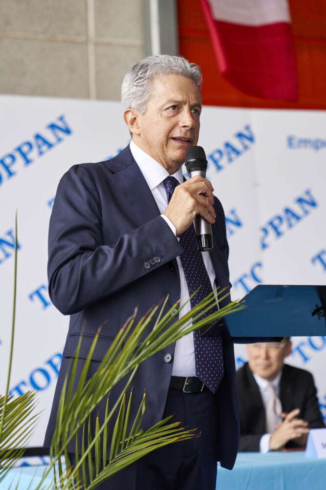 Alla cerimonia erano presenti i vertici del Gruppo Toppan: Satoshi Hoya, Presidente Corporate and Global Business Affairs, Manohar Kumar, CEO di Toppan Specialty Films, Masahiko Tatewaki, Head of Global Packaging Operations e Presidente e CEO di Toppan Specialty Films USA, Hiroshi Suzuki, Vice Direttore della Divisione Living & Industry, con responsabilità per la Strategia R&S e le Operazioni Globali.