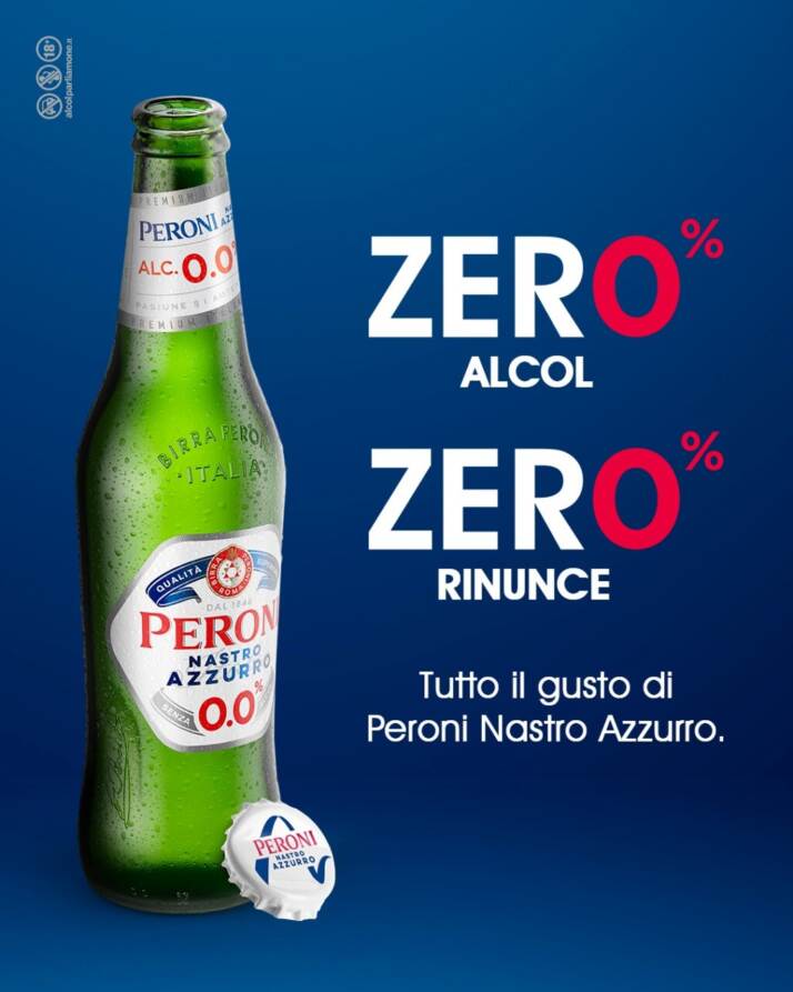 Peroni Nastro Azzurro, il brand di birra premium icona di stile e autenticità, è sinonimo di tradizione, passione e stile italiano. All’interno del suo portfolio è presente Peroni Nastro Azzurro 0.0%: l’evoluzione senza alcol del brand che annuncia la sua nuova campagna “Zer0% Alcol, Zer0% Rinunce, tutto il gusto di Peroni Nastro Azzurro”.