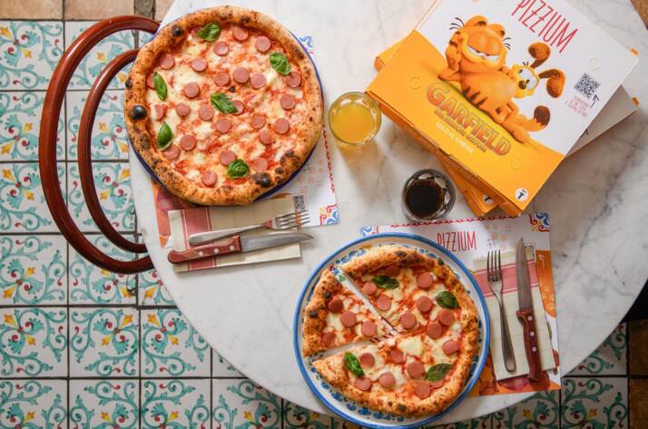 Gatto e pizza, un binomio da far impazzire tutti i bambini. Ecco allora che Pizzium diventa partner del lancio del nuovo lungometraggio a cartoni “Garfield – Una missione gustosa”, con il simpatico musone del gatto farà compagnia ai pizza lover con una presenza personalizzata su tovagliette e scatole per l’asporto. L’amore fra il cucciolo Garfield e il suo amico umano John è nato davanti a una bella pizza fumante, forse è questa la ragione che il gatto più goloso dell’Universo, si lecca i baffi con le lasagne e con la pizza.