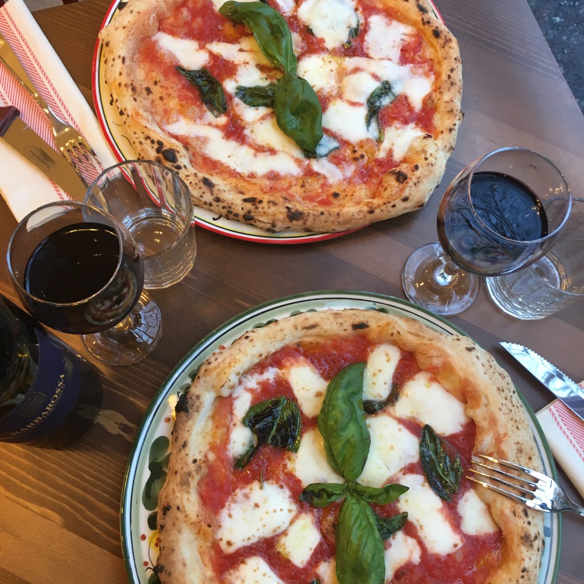 Bella selezione di vini naturali, proposti anche al calice. Nomi noti come Dettori in Sardegna, ma anche realtà interessanti sui rossi come Ricci e il Barbarossa. Proposta che sta piacendo, perché sempre più la pizza viene servita in abbinamento al vino e da Pizzium questo lo hanno capito. Purtroppo è arrivato il tempo di alzarci, leggeri leggeri, tre pizze in due con grande soddisfazione. Sto già pensando quando ritorneremo, chiedo informazioni per le prenotazioni che non vengono prese, ma non c’è nessun problema. Uno staff giovane, cordiale ed efficace garantisce la velocità di servizio.