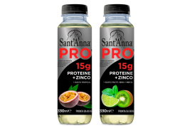 Proseguendo nel percorso di sviluppo e innovazione di prodotto, Acqua Sant’Anna lancia sul mercato un prodotto unico, Sant’Anna PRO: bevanda ad alto contenuto di proteine con 15g di proteine + zinco in due gusti: tropical e frutti verdi + menta (0,33L).