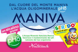 Acqua minerale Maniva è un’acqua alpina a denominazione d’origine, leggera ma non vuota, con un residuo fisso di 98 mg/litro, con poco sodio, solo 2 mg/litro, idonea all’alimentazione dei neonati. La sua qualità peculiare è quella di essere un’acqua marcatamente alcalina con un valore del pH pari a 8.