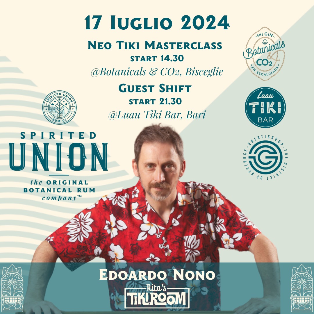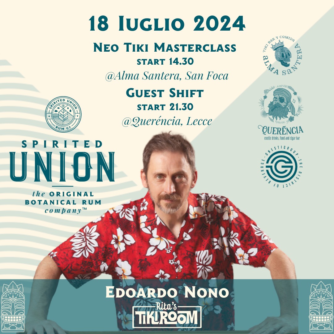 OnestiGroup, distributore esclusivo in Italia dei rum Spirited Union, ha organizzato lo Spirited Union Tour, che sta per approdare in Puglia e Lazio con un programma ricco di eventi esclusivi. Protagonista di questa esperienza sarà Edoardo Nono, il fondatore e mixologist dei rinomati locali milanesi Rita’s Tiki Room e Rita & Cocktails, quest’ultimo vincitore del premio Roma Bar Award 2024 come Best Italian Cocktail Bar.
