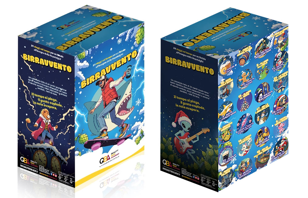 Il Calendario dell’Avvento QBA èpensato come una vera Birravventura tra stili e culture birrarie. Il design richiama immaginari sci-fi, viaggi temporali e universi paralleli, con una confezione illustrata a edizione limitata.