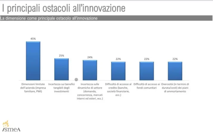 Il 78% delle aziende coinvolte nella ricerca si è dichiarato propenso a investire anche nei prossimi 5 anni, nonostante la situazione resti piuttosto critica sul piano degli equilibri dei rapporti internazionali. L’indagine, condotta nel 2022 su un campione di 197 aziende vitivinicole ha evidenziato – informa l’istituto – anche la presenza di ostacoli alla realizzazione di investimenti nell’innovazione, tra questi la ridotta dimensione delle imprese (45%), l’incertezza sui benefici degli investimenti (25%), il quadro di instabilità del mercato (24%), le difficoltà di accesso al credito (22%) e ai fondi comunitari (22%) e l’onerosità degli investimenti (22%).