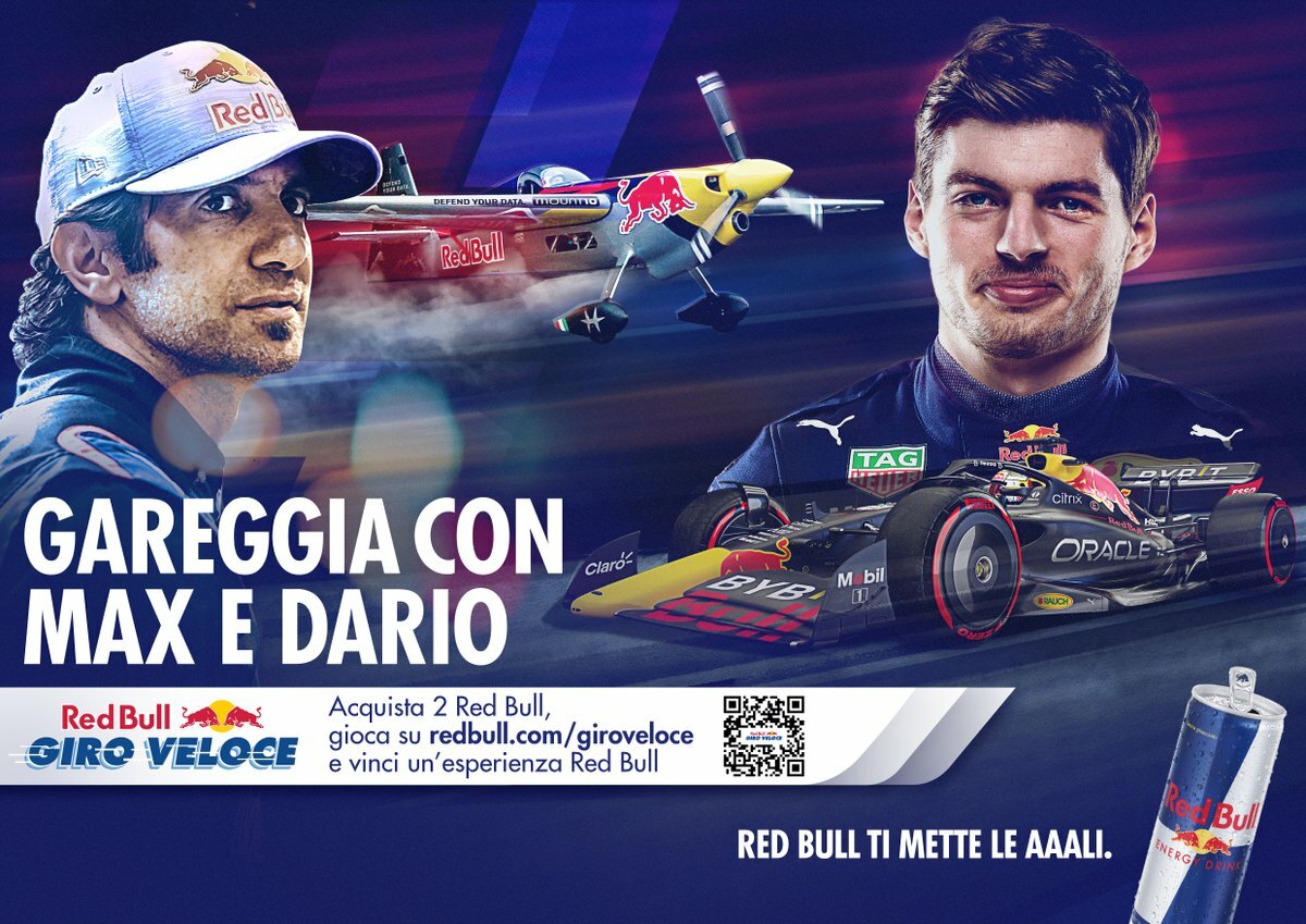 Acquistando 2 lattine di Red Bull nelle varianti di gusto disponibili e conservando lo scontrino, sul sito Red Bull è possibile partecipare al contest online Giro Veloce. L’obiettivo del consumatore è realizzare il giro più veloce del Red Bull Ring, selezionando come pilota nel minigame proposto o Max Verstappen con la monoposto di F1 Oracle Red Bull Racing, oppure Dario Costa con il suo aereo acrobatico.