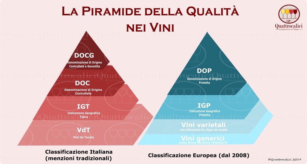 I vini provenienti da una DO o da una IG che rispettino il disciplinare di produzione e che abbiano superato le analisi e i controlli sono vini, rispettivamente, a Denominazione di Origine Protetta (DOP) e Indicazione Geografica Protetta (IGP). Poiché i produttori, pur tenuti a uniformarsi al nuovo sistema europeo, possono mantenere le menzioni storiche nazionali, un vino DOP potrà continuare ad utilizzare la menzione DOC e DOCG, così come un vino IGP potrà essere ancora indicato come Indicazione Geografica Tipica (IGT).