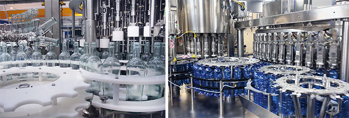 Disponibili sia per riempimento di bottiglie PET che di Vetro e Alluminio, le soluzioni ENOBERG si adattano perfettamente all’imbottigliamento di bevande piatte (acqua, isotonici, succhi, salse, aceto, liquori, olio) e gasate (acqua, bibite, birra).
