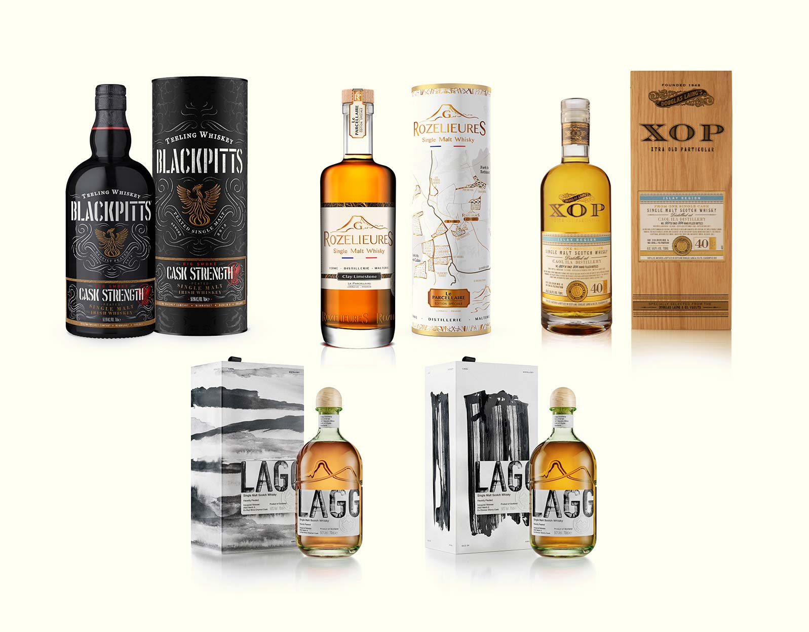 • XOP Laphroaig 1992 30 y.o. matura in botti di bourbon per tre decenni. Questo raro whisky presenta un le note di torba tipiche di Laphroaig temperate da lime e sale marino. Si presenta di colore oro brunito, al naso presenta note di frutti tropicali maturi, noci di macadamia tostate e anche un pizzico di crema alla vaniglia. Al palato è decisamente affumicato, temperato da lime e nettarina, che lasciano spazio al sale marino e al peperoncino dolce. Finale estremamente persistente, cuoio e tabacco a farla da padrone.