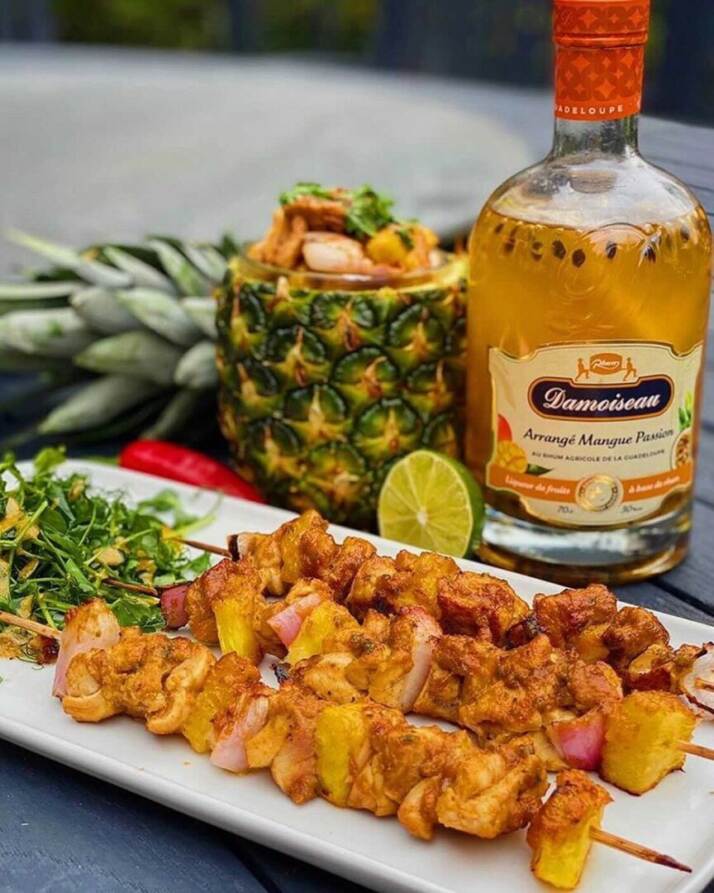 La famiglia Damoiseau, proprietaria della distilleria Bellevue in Guadeloupe, produce dal 1942 un Rhum Agricolo di alta qualità alle porte di Le Moule, nella Grande-Terre. Prodotto con il 100% di succo di canna da zucchero spremuto, grazie ad un processo ispirato alla produzione dei grandi brandy, in particolare dell’Armagnac della Francia sud-occidentale. Il rhum arrangè è il frutto della macerazione di frutta, spezie o fiori in rhum, generalmente agricolo bianco prodotto nei territori francesi d’oltremare, tra cui la Guadalupa. Una bevanda emblematica in Reunione, comune nelle Antille e in Madagascar. Una nuova via per scoprire il rhum agricolo con nuove percezioni aromatiche. Il rhum agricolo viene risaltato dalla dolcezza esotica. L’appellazione «Produit Pays» garantisce che tutti gli ingredienti provengono della Guadalupa. Damoiseau desidera catturare lo spirito tropicale in una bottiglia. L’ananas fresca è tagliata e messa istantamente nelle bottiglie pezzo per pezzo insieme alla vaniglia. Dopodiché il rhum agricolo bianco Damoiseau viene aggiunto.