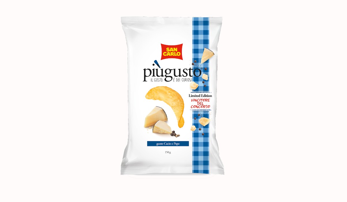 Ogni nuovo gusto è una scoperta, può venire da lontano, nascere da viaggi che permettono di sperimentare con la mente e con il palato o da vicino, quando nei ricordi d’infanzia si ritrovano profumi e sapori mai dimenticati. Ed è proprio dai ricordi che nasce la nuova Limited Edition piùgusto, gusto “Cacio e Pepe”, l’abbinamento vincente della settima edizione del concorso San Carlo “Alla ricerca del gusto” proposto dalla 26enne milanese Angelica, che sprigiona tutto il sapore di un grande gusto italiano e tipicamente romano.