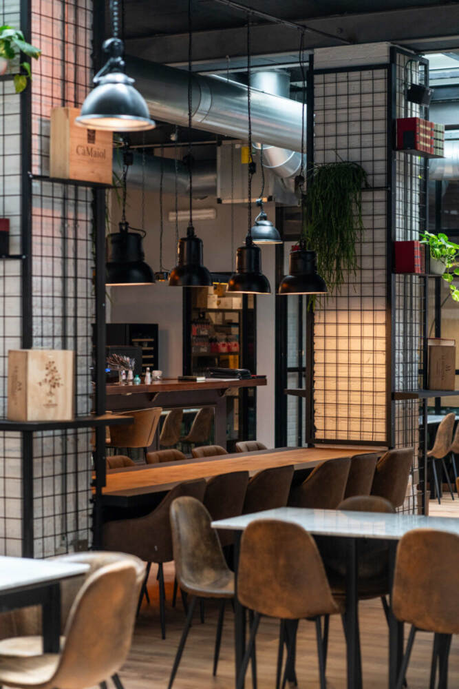 L’ambiente è un omaggio alla convivialità dallo stile industrial chic con la sua atmosfera accogliente e originale grazie ai tavoli sociali, alcuni dei quali realizzati con materiali di recupero. Di grande impatto il bancone di ben 14 metri, con posti a sedere e 12 birre alla spina che permette di godere la cena direttamente vista bar per un approccio diretto con il barman. Aperto dalle 10 del mattino fino al dopocena, ma con in cantiere il brunch nel weekend, durante la settimana ospita serate tematiche con musica jazz live, pianobar e djset.