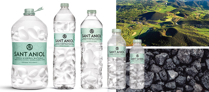 I contenitori in PET di Sant Aniol hanno un design singolare ed elegante, che nasce dall’idea di esaltare le qualità dell’acqua la cui sorgente si trova all’interno del Parco Naturale della Garrotxa, a più di 120 metri di profondità, in un luogo caratterizzato da lava sedimentata e roccia vulcanica che conferiscono all’acqua purezza e qualità eccellenti.