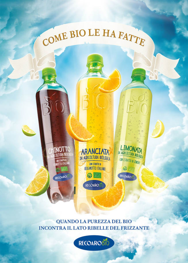 Le Recoaro Bio Recoaro rappresentano un omaggio alla tradizione che si veste di modernità, attraverso il recupero delle ricette originali e all’utilizzo di estratti in linea con gli ultimi trend di consumo. Limonata e Aranciata acquistano un gusto tutto nuovo grazie all’aggiunta di zenzero e bergamotto, e il Chinotto si distingue per un sapore unico grazie al caramello ottenuto dalla lavorazione artigianale dello zucchero di canna biologico.