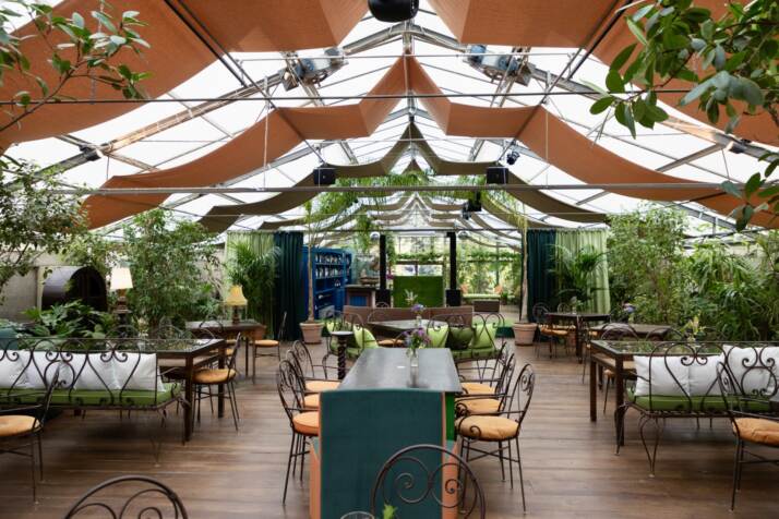 “In questo restyling abbiamo dedicato grande attenzione alla cura delle piante, valorizzandole non solo come elementi estetici ma come veri e propri alleati naturali del benessere degli spazi” spiega Vanni Torrigiani, socio fondatore delle Serre. “Il nuovo sistema le integra in un processo di assorbimento e trasformazione degli inquinanti, restituendo aria più pulita e riossigenata. In questo modo le piante diventano parte integrante del progetto, coniugando bellezza, funzionalità e sostenibilità ambientale”. Ad accogliere il visitatore, oggi c’è una soglia scenografica che segna il confine tra città e giardino: l’opera site specific di Matteo Baroni, una scultura viva che si intreccia con le botaniche circostanti creando un continuum tra interno ed esterno. Parallelamente, la location interna è stata ripensata da Paolo Nesi con la direzione creativa di Giuseppe Dicecca: materiali naturali, colori morbidi e forme tondeggianti che dialogano con l’ambiente circostante e restituiscono un senso di armonia e leggerezza.