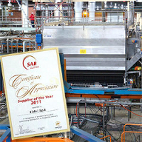 Essendo il risparmio energetico un aspetto chiave di ogni impianto industriale, la serie Hydra offre prestazioni altamente competitive in termini di riduzione del consumo di acqua, vapore e carbonato di sodio. La lavabottiglie può essere adattata anche a paesi caratterizzati da climi estremi, grazie alla possibilità di effettuare fasi differenziate nell’area di pre-lavaggio. L’attribuzione del titolo di “Fornitore dell’anno” a Sidel per il modello Hydra è avvenuta in occasione della manifestazione “Brewers Breakfast” svoltasi a luglio. Si tratta di un evento annuale organizzato da SAB di Prospecton per ringraziare i fornitori che hanno lavorato nel birrificio nel corso dell’anno precedente. Erano oltre vent’anni che il titolo di “Fornitore dell’anno” non era assegnato ad un fornitore di macchine. “Le attrezzature sono state fornite entro le rigide tempistiche previste dal progetto; l’incarico è stato svolto in modo puntuale ed efficiente e le scadenze sono state rispettate”, afferma Thuthuka Nxumalo, direttore generale di SAB Prospecton. La fornitura della lavabottiglie ha permesso a Sidel di infrangere alcune barriere nel rapporto con SAB.