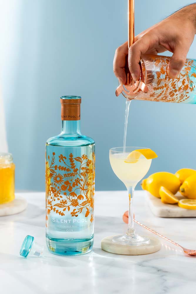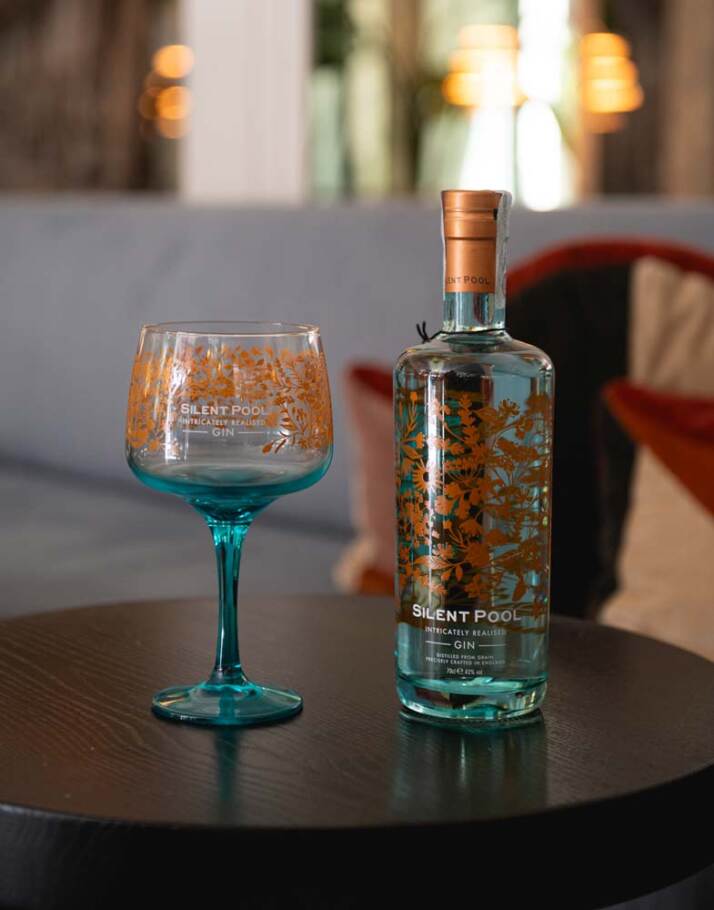Ispirandosi alla ricca storia e alla bellezza mozzafiato di Silent Pool, Ian intraprese la trasformazione di un insieme di edifici agricoli fatiscenti nella tenuta di Albury del Duca di Northumberland in una fiorente distilleria. Nasce così, nel 2015, Silent Pool Gin, un vero e proprio omaggio al suo luogo d’origine. Questo eccezionale gin riflette la sua provenienza e l’essenza del tranquillo laghetto da cui prende il nome in ogni dettaglio, dalla distillazione di ingredienti locali al packaging. La sorprendente tonalità verde acqua della bottiglia, riprende proprio lo straordinario colore di Silent Pool, mentre i motivi artigianali in rame che decorano la bottiglia raffigurano intricate illustrazioni botaniche che rimandano sottilmente alle leggende che accompagnano il laghetto.