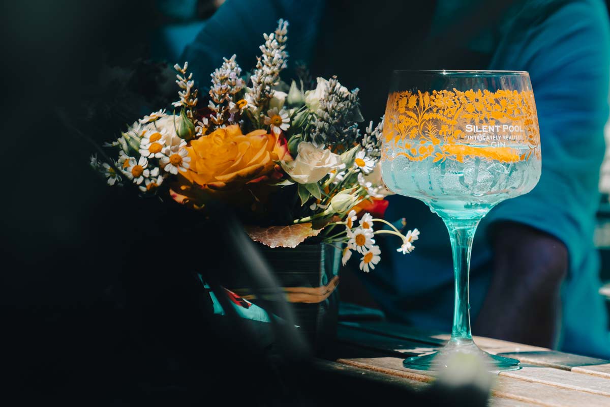 Ispirandosi alla ricca storia e alla bellezza mozzafiato di Silent Pool, Ian intraprese la trasformazione di un insieme di edifici agricoli fatiscenti nella tenuta di Albury del Duca di Northumberland in una fiorente distilleria. Nasce così, nel 2015, Silent Pool Gin, un vero e proprio omaggio al suo luogo d’origine. Questo eccezionale gin riflette la sua provenienza e l’essenza del tranquillo laghetto da cui prende il nome in ogni dettaglio, dalla distillazione di ingredienti locali al packaging. La sorprendente tonalità verde acqua della bottiglia, riprende proprio lo straordinario colore di Silent Pool, mentre i motivi artigianali in rame che decorano la bottiglia raffigurano intricate illustrazioni botaniche che rimandano sottilmente alle leggende che accompagnano il laghetto.